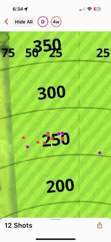 This was the last hole to put straightness and grouping into perspective once I got to grips with the driver. Three drives all within 5 yards of each other, and hit about 285 yards which is decent for me. I am normally straight but I don’t think I’ve hit 3 drives within 5 yards of each other.